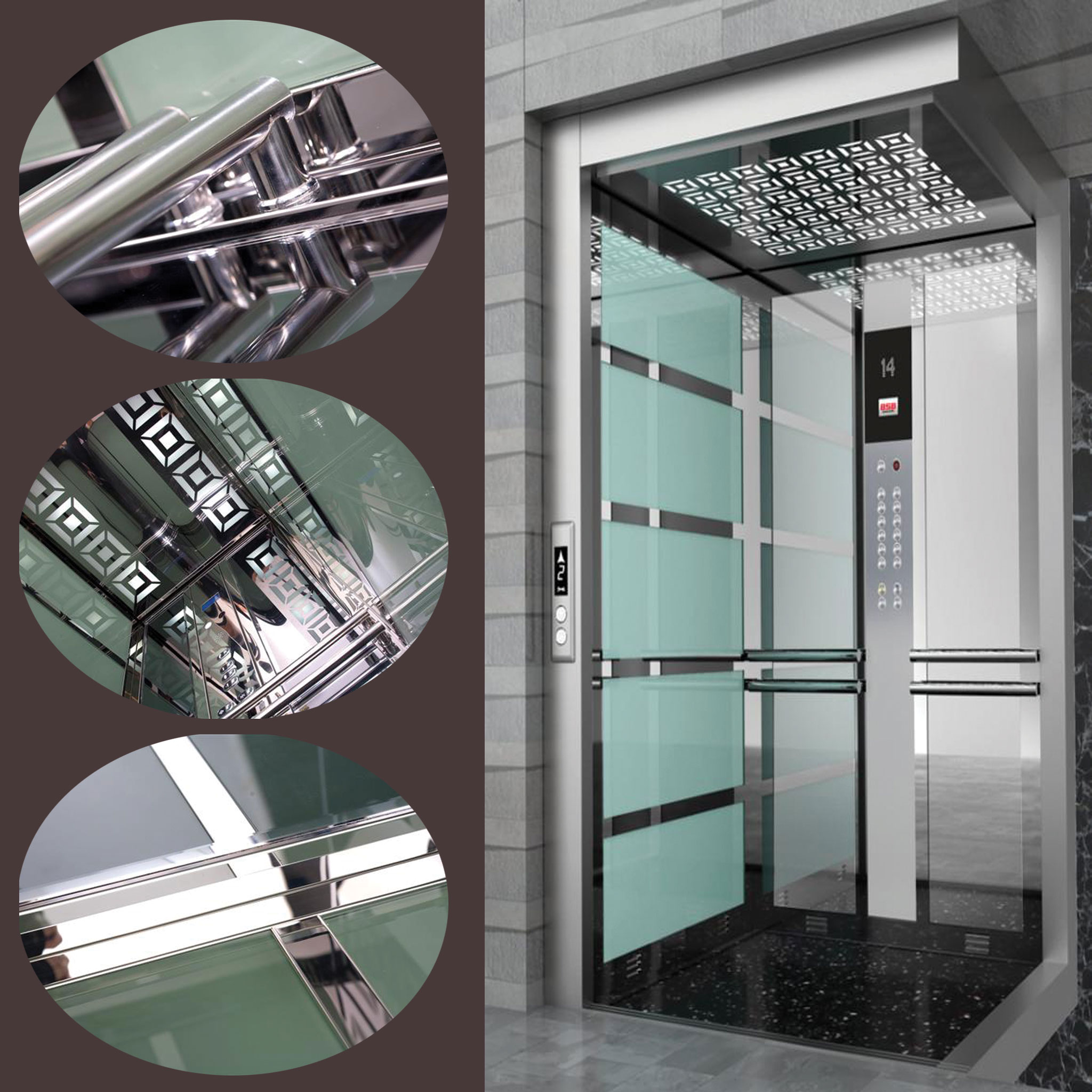 | يفتح من الداخل , ستانلس ستيل مرآة ,مزخرف و محفور بالليزر | سقف الكبينة |